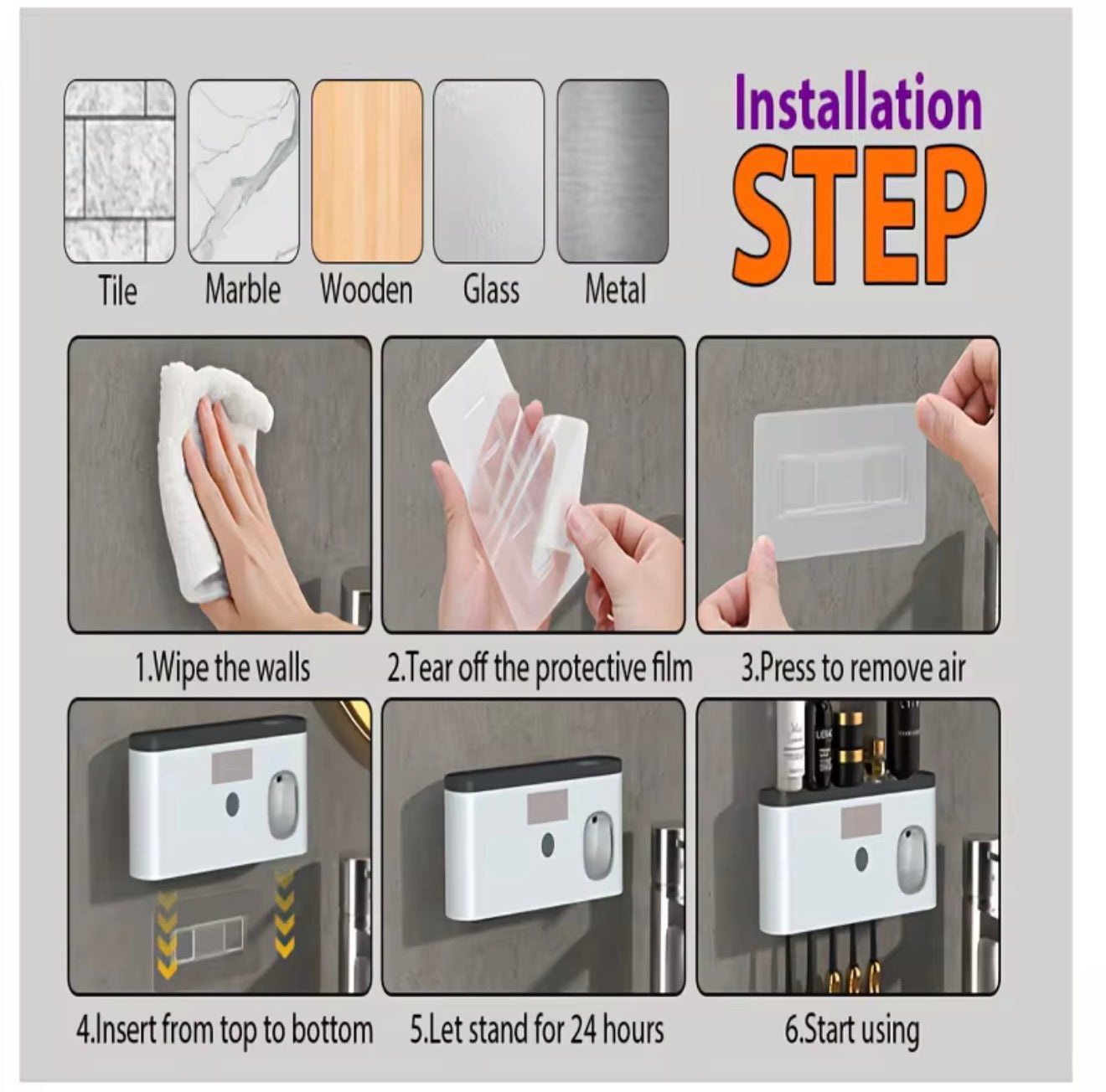 Porte-brosses à dents stérilisant mural avec distributeur automatique de dentifrice